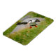 Rektangulär fotomagnet med en atlantisk pufffågel som flyger med utspridd vingar innan den landar på ön Runde vid Norgens atlantiska kusten.