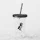 En söt atlantisk Puffin som står på sidan. Huvudet på den här söt fågeln är på väg att visa upp sin slagmärkning.