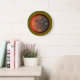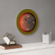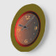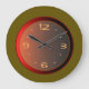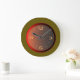 En atmosfärisk väggklocka i varmt mossgrönt med ljuseffekter i rött! Denna klockdesign har också siffror i citron-gul !