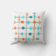 Dekorativ kudde har i mitten av århundradet en modern utformning av ett rutnät i svart linjer med orange- och tårcirklar och diamanter.