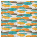 Starburst mönstermitt--århundrade modernt inspirerat tyg i orange, kricka och brunt på en vitbakgrund. De ovala mönstren var populära under mitt--århundradet tidsperioden.