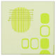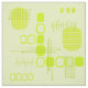 Ett modernt konsmönster i abstrakten som skulle ha passande höger på 1950-talet. Olika former av ovalkretsar och linjer i chartreuse eller skarp tennis boll gult.