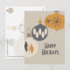 Atomåldern Retro Ornaments Glad helg Helgdag vykort - Stiliserat Retro tittar ornament i orange, tan, brun och grått. Icke-traditionellt färg, men med traditionella prydnadsföremål. På framsidan står "Glad helg" och baksidan har två dekorationer med en ogenomskinlig film så att du lätt kan skriva över överkanten. Hela texten är helt anpassade - baksidan av kortet är ett ställe för dig att lägga till returadressen! Du kan ändra texten eller ta bort den helt. Det är upp till dig. Glad helg från Kristin och Steve - KNS Card Shop.