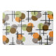 En retro-atomera inspirerade mönster med brun molekylcirkel, orange, grått och chartreuse, tillsammans med modernt, fetstilt linjer i mitten av århundradet.