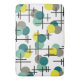 En retro-atomera inspirerade mönster med teal-, turkos-, grått- och gult-molekylcirklar, tillsammans med modernt, fetstilt linjer i mitten av århundradet.