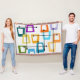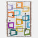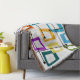 Den här täckfilten har en design av rektanglar som är utsträckta på ena änden i groovy färg, orange, grönt, teal, lila, blått, rosa och gult med atomisk linjer som sprider dem.