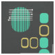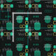 Ett modernt konsmönster i abstrakten som skulle ha passande höger på 1950-talet. Olika former av ovalkretsar och linjer i turkos och guld mot svart bakgrund.