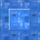 Ett modernt konsmönster i abstrakten som skulle ha passande höger på 1950-talet. Olika former av ovalkretsar och linjer i verkligt blå form.