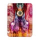 Vacker, vismisk, surrealistisk och trippig kollage av en underlig, annan världslig kvinnlig enhet i regnbåge färg.