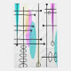 Atomera Abstrakt kökshandduk. Färg och design i gult för rosa, tårblått och blek. Konstnärlig duplicerad atomdesign baserad på en textilfärgruta från tidsperioden.