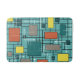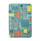 Ett modernt mönster för geometrisk abstrakt med linjer, fyrkanter och rektanglar i turkos, teal, orange och gult.