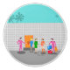 Du är inbjuden till årets social-evenemang med denna keramiska dragdesign för atomenergin Vår Stewardess Party. Gå med dessa tre vintagars flygassistenter från rivaliserande flygbolag när de checkar in på deras kitschy 1960-talets brödblockhotell. En av de häpnadsväckande jagande klockorna i en shock rosa håller dörren till orangen medan den andra kämpar med kvinnans bagage. Teal handflatan träd går i bakgrunden till den omöjliga turkosen himlar som en brygga som flyger över havet. Den här designen får dig att säga: "På ditt märke, jet, gå!"
