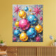 Step back into the dazzling holiday glamour of the 1950s and 60s with this unforgettable wall art print! This design bursts with Atomic Age energy, featuring a dynamic cluster of oversized Christmas ornaments in a brilliant, non-traditional palette of Hot Pink, Electric Blue, and Sunny Yellow.