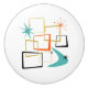 Lägg till stänk i roligt och färg i facklan eller i marschen med denna fantastiska atomera i mitten av århundradet moderna keramiska knopp. Den här designen har abstrakt-fyrkanter, stjärnsprängningar och en bomerang i färgen av orange, turkos, gult, guld och svart...så funky!