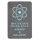 Tur och njud atomkretskort Spara datumpremiummagnet med en enkel atomiskt symbol i ljusblå färg på en kalkbrädbakgrund. Spara datum magneter och roligt är perfekt för att tillkännage ert vetenskapstema bröllop! Enkel att anpassa, lägg bara till informationen om bröllop i de utrymmen som finns. Klicka på Anpassa om du vill söka efter fler anpassningsalternativ.