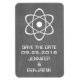 Tur och njud atomkretskort Spara datumpremiummagnet med en enkel atomiskt symbol i vitt på en kritbordsbakgrund. Spara datum magneter och roligt är perfekt för att tillkännage ert vetenskapstema bröllop! Enkel att anpassa, lägg bara till informationen om bröllop i de utrymmen som finns. Klicka på Anpassa om du vill söka efter fler anpassningsalternativ.
