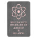 Tur och njud atomkretskort Spara datumpremiummagnet med en enkel atomiskt symbol i rosa på en kalkbrädbakgrund. Spara datum magneter och roligt är perfekt för att tillkännage ert vetenskapstema bröllop! Enkel att anpassa, lägg bara till informationen om bröllop i de utrymmen som finns. Klicka på Anpassa om du vill söka efter fler anpassningsalternativ.