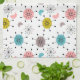 Roligt 1950:s retro-atomiska starster mönster i blått, gult, rosa och lera.
