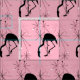 Atomic Starburst MidCentury Modern Flamingo Repeat Mönster väv för alla dina återstrandsövningsprojekt. Black flamingo silhouette på en blek pastel rosa-bakgrund fylld med modernt inspirerad atomic starburst design inslag.
