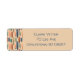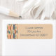 Dessa returetiketter har ett modernt mönster i mitten av århundradet med långa ovaler i persikor, grönt, blått, teal och ljusbrun med svart linjer med cirklar på ändarna.