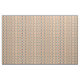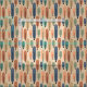 Denna väv har en modern utformning i mitten av århundradet av långa ovaler i persikor, grönt, blått, teal och ljusbrun med svart linjer med cirklar på ändarna.