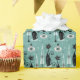 Min ursprungliga vektorillustration av vintage inspirerade katter, Julgranar, prydnadsföremål, snö och stjärnsprängningar, i svart, rosa, skuggor av muterad teal och en antydan av elfenben. ©Christine Duffield 2019-21.