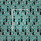 Min ursprungliga vektorillustration av vintage inspirerade katter, Julgranar, prydnadsföremål, snö och stjärnsprängningar, i svart, rosa, skuggor av muterad teal och en antydan av elfenben. ©Christine Duffield 2019-21.