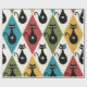 Backa dina gåvor i vintage söt atomic stil med den här inslagna pappra ludden vid mitten av århundradet på harlequindiamanter i avokado grönt, teal, senapssydd gult och rött. Det är perfekt för retro themed party och för retro-katter svarta katter
