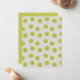 Denna platta, blanka notecard har en modern utformning av solarbågar i mitten av århundradet som upprepar sig på vit som bakgrund med upprepande cirklar mellan grönt och guld med mörkare stjärnor grönt-guld inuti dem. Lägg till ditt eget personliga meddelande på baksidan.