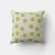 I dekorativ kudde har man en modernt utformning under mitten av århundradet av solarstensfärgade bågar som upprepar sig i vitt som bakgrund med upprepande cirklar mellan grönt och guld med mörkare stjärnor mellan grönt och guld inuti dem.