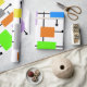 Detta papper är täckt av ett modernt mönster i mitten av århundradet av en rad olika rektanglar som är sammankopplade. Färgfull och roligt!