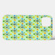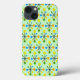 Detta telefonfall är täckt av en modern utformning av atomstjärnor i mitten av århundradet mot bakgrund av grönten.