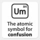 Atomsymbolen för konfusion. fyrkantigt klistermärke