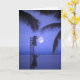 Inramat av palmträdormbunksblad, två silhouettes på nightime som upp går en stege som om för att ne för månen, från en skulptur på boardwalken i portstaden av Puerto Vallarta, Mexico. Digital verkställer ökat. Fotografi vid Minerva blom.