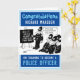 För en polis som har fullföljt polisutbildningen. Lönsam illustration av Tecknaden visar att poliser vid polisskolan lär sig de grundläggande principerna. Klass av polis vid en polisakademi. Grattis kort för nyutexaminerad polis. Lustigt tecknad av polis.