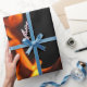 Detta slående in papper visar energin av avfyrar i en wood brinna ugn. Orangen, guldet och gulten flammar syns som glatt danstecken. De är fastställda av vid en svart bakgrund.