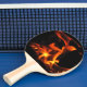 Denna pingpong paddlar visar energin av avfyrar i en wood brinna ugn. Orangen, guldet och gulten flammar syns som glatt danstecken. De är fastställda av vid en svart bakgrund.