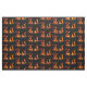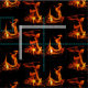 Denna konsttygdesign visar ett upprepande abstrakt mönster av energin av avfyrar i en wood brinna ugn. Orangen, guldet och gulten flammar syns som glatt danstecken. De är fastställda av vid en svart bakgrund.