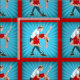 Koppla ihop dansen kunde vara latinskt, salsan, diskot som skrivs ut på en blå bakgrund med en starburstdesign, och röd klippning.