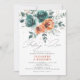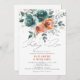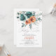 Den här höstens kärleksinbjudan i teal, bränd orange, botanisk och blomstergalenskap för bröllop eller brudvisning fångar essensen av hösten med en bohemisk botanisk blomsterkant med akvarellrosor och bröllopsgrönska i de rika, varma nyanserna teal och terrakotta bränd orange, samt titeln "Falling in Love" i modern kalligrafi. Den inbjudande designen kompletteras av en blek akvarellstruktur, som frammanar den krispiga luften och de gyllene nyanserna av hösten. Perfekt för en brud som planerar en rustik trädgårdsbrudvisning eller en intim bakgårdscelebration, denna inbjudan speglar perfekt den mysiga och romantiska atmosfären under hösten, och blandar romantisk konstnär