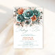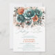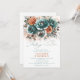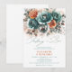 Denna inbjudan till höstens kärlek i teal och brändorange botanisk blomsterbröllop eller bröllopsfest för bruden fångar höstens väsen med en boho botanisk blomsterkant med akvarellrosor och bröllopsgrönska i de rika, varma nyanserna teal och terrakotta bränd orange, samt titeln "Falling in Love" i modern kalligrafi. Den inbjudande designen kompletteras av en blek akvarellstruktur, som frammanar den krispiga luften och de gyllene nyanserna av hösten. Perfekt för en brud som planerar en rustik, trädgårdsbröllopsfest för bruden, eller en intim bakgårds firande, denna inbjudan speglar perfekt den mysiga och romantiska atmosfären under hösten, och blandar romantisk konst