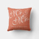 Personligkorall och att gifta sig för vitherrskap kudder. Design av Elke Clarke©. Tillgängligt på www.zazzle.com/monogramgallery. Flott, personligen, koralllinnebakgrund (det utskrivavna fotoet verkställer), anpassadet med bruden och brudgumnamn i vit skriva stilsorten, och bröllop daterar. Den härliga designen är perfekt för att gifta sig gåvor, älskling kudder, bröllopsdaggåvor och mer. Använd redigerar menyn för att ändra färger, eller att besöka vårt lager för mer planlägger och färgar alternativ.