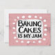 "Baking Cakes Is My Sylt" är en söt textdesign i rosa med svart text, tillsammans med en vit accent-form och vita texturerade visuella punkter som omger den.