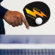 Svart pingpong paddlar, med diagram av en guld- gul lightening kasta i sig och gulna läs- inoljad lightening för text. Personifiera den gula texten för att läsa vad du önskar. Gör en underbar gåvaidé.