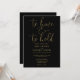Denna svarta och gyllene minimalistiska eleganta bröllopsinbjudan med skrivstil kan anpassas med din information i chic typografi med detaljer om din bröllopswebbplats och din QR-kod på baksidan. Designad av Thisisnotme©
