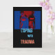 Ta kontakt med någon som behöver din förståelse och ditt stöd. Ett nyktert men positivt budskap förmedlas av denna semi-abstrakta design i mörkblå, röda och svarta toner. Grafiken föreställer unga män med ordet ”Krig” på skjortan som ”Coping with Trauma”, vilket är en av de mest extraordinära och brutala utmaningar (fysiskt eller emotionellt) som människor kan komma att möta. Men för de som lider av trauma, oavsett källa, har grafiken också en upprättande kvalitet - du är inte ensam och du kan hantera det. En lugnande blå bakgrund med en mindre version av samma grafik finns på framsidan inuti kortet.