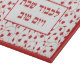 Elegant glass Challah Board har ett rödsnurrande mönster, i sitt centrum är skrivet i det klassiska hebreiska typsnittet Lichvod Shabbat v’Yom Tov översatt till "för att hedra shabbat och Helgdagar". Den här enkla tavlan är unik i många år för komen! Den 12-tums x12-tums matchande Challah Cover koordinerar väl med 11-tums x8-tums Challah Board.