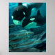 Ergens in de Atlantische Oceaan leert een jonge orka hoe hij moet jagen op de glinsterende scholen makreel Digitaal geschilderd.