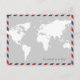 Vita världen-karta på flygpost-ram med citat: "Att resa är att leva