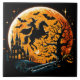 Att rida häst mot Halloween måne Kakelplatta